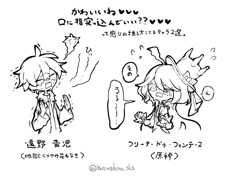 Yatsushiro_tks☆quiet followDOODLE推しかたいろいろ #フリーナ Furina #原神 genshin #地獄くらやみ花もなき Tap to full screen (size:1118x870).Repost is prohibited Let's send reactions! freqpopularsnackothersPayment processing Replies from the creator Follow creator you care about!☆quiet follow Yatsushiro_tksPROGRESSまどめオンリーの表紙にする予定のもののラフができてきました画力が試される構図にしてしまい後悔しています 果たして上手く描けるのか??? Yatsushiro_tksDOODLE忘バ、沼が深い千早瞬平、好き Yatsushiro_tksDOODLE推しかたいろいろ Yatsushiro_tksDOODLE表示テスト Yatsushiro_tksDOODLEお待たせいたしました、こちら悪友組と大喧嘩と昔話、夏祭りを添えてになります。公式とは一切関係はなく、濃厚な捏造と妄想をたっぷりトッピングしております故お気をつけてお召し上がり下さいませ。忠告しましたよ???いいですね???パスワード:大丈夫ですね?? yes/no※悪友組の解釈を煮詰めていますが、前提としてちゃんとバルシャスとザガネフィがあります。描写はほぼありませんが。 7875 Yatsushiro_tksDOODLE「彼は悲しかった」で始まる120字チャレンジの削る前ver.です。蛇足かもしれませんが120字ver.の方で使った表現の「狸」は、因果応報の代名詞として使ってます(カチカチ山)。バル、「三味線引いてた」みたいな表現使う人なので割とそういう教養あるんじゃないかなという妄想。 257 related works zumyDONE若陀龍王による「裏切られた」の一言。モラクスを強く信頼していたからこその発言だと思います。怒りや悲しみで溢れる心の奥深くに、モラクスと過ごした日々の記憶が眠っていて欲しい。そんな思いを込めて描きました。(Twitterより) ハリねずみDOODLEフリーナとぷくぷく獣&平蔵のらくがきー2枚目は色塗りもするつもりだから頑張りたい!! 2 @keiko_puchi22DONEおたおめ!先輩! でんöDONE チリコンカンDOODLE顔がうるさいね・・・・・・・ もりもりDONE今週末Twitterに全体の上げる予定! NeveeDONEExercise with his doll:3 @keiko_puchi22DOODLEナヴィアお嬢様、久々の岩元素なの楽しみ AkiDOODLE🌸Twitterやってます↓https://onl.bz/hgWDF1i#原神 #胡桃 recommended works halDONEアルベドのここが好き ネムノキDOODLE dpakiraDOODLE七七のこと?ペットじゃないキョンシーべつにペットじゃないhttps://youtu.be/tczJxzuJmoM kurozu_gnsnDONE1枚ずつバージョン。Twitterに上げたのはまとめてちょっと加筆したVer。 2 wejpi3_DOODLEAether tummy rubs qinglin213DONE一个人出门太危险了,带上这个吧 ほたDOODLE魈くんほしい… いぬodiTRAININGモブ×ゴロちゃん imokoooo1201MOURNING途中で力尽きた未完成カーヴェさん。初描き!