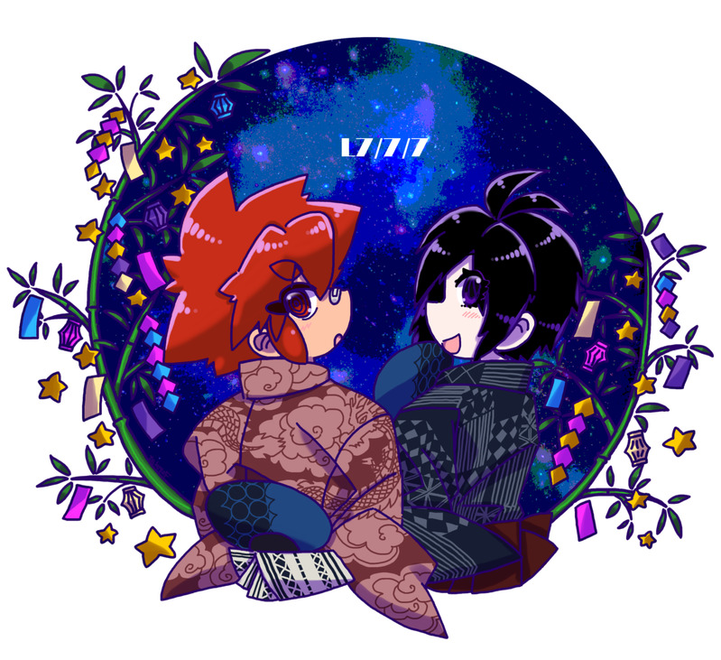 浴衣の日で浴衣着せて七夕が無かったのでオーソドックスですがたまにはちゃんと描く。背景は透過させたかったのでやや手直し