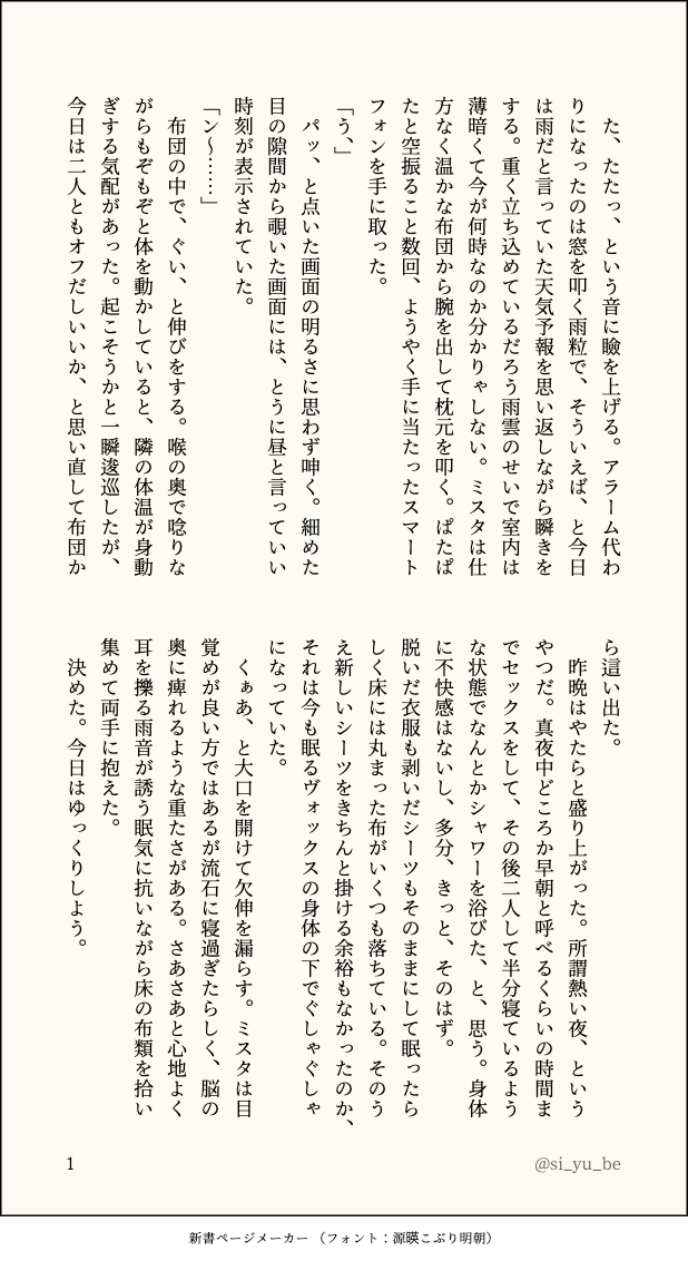 si_yu_be☆quiet followDONE #FoxAkuma🧡×❤️ 捏造いっぱい雨の日にダラダラ過ごすふたり show all(+6 images) Tap to full screen (size:618x1132).Repost is prohibited Let's send reactions! freqpopularsnackothersPayment processing Replies from the creator Follow creator you care about!☆quiet follow si_yu_beDONE #mafiakuma💛×❤️ 捏造いっぱい⚠️年齢操作 なんらかの現パロ?続かない 6 si_yu_beDONE #FoxAkuma🧡×❤️ 捏造いっぱいお盆に霊を迎える❤️とそれを見てる🧡の話です 6 si_yu_beDONE #IkeAkuma💙×❤️🔞 捏造いっぱい脳イキ濁点♡喘ぎのアホエロですpass:18↑? 3225 si_yu_beDONE #FoxAkuma🧡×❤️ 捏造いっぱい雨の日にダラダラ過ごすふたり 7 si_yu_beDONE #Shuvox👟×👹捏造いっぱい他さんにんが元の場所に帰ってしまった後のはなし 3 si_yu_beDONE #FoxAkuma🧡×❤️ 捏造いっぱいベッドでゆるく話してる感じのやつ 短い 3 related works _light2412_CAN’T MAKE👹📦🦊(❤️🧡)幼馴染設定(一卵性双生児👹📦、カントボーイ🦊)※♡濁点汚喘ぎあり、二輪挿し、3Pなんでも大丈夫な方のみお読みくださいパスワードは18↑? yes/no 5522 sanoDONEMystike(🦊×✒️)とFoxakuma(👹×🦊)🔞です。3P的な感じにしようと思っていましたが直接描写があるのは👹🦊になっていました。👹🦊二人の喫煙シーンがあったりと幻覚しかないので正気を持っている方は閲覧ご遠慮下さい。pw:あなたは十八歳以上ですか?(yes・no) 5531 banuucoDONE▲後編2▲ お待たせ!次回で完結!👹🦊+👟ヴォが💙💙言いすぎてミがちょっと精神的におかしくなる話の続き。病みミに希望を抱いてる。(1/13) #FoxAkuma #shusta 7244 わかめDONE #FoxAkuma陰鬱。タヒネタ。カニバ。閲覧による損害が発生しても責任は負いかねます。自己責任でお願いいたします。 686 冷玄LengXuanDOODLE👹🦊事後早晨我愛體格差 tskr🥴#FoxAkuma _light2412_CAN’T MAKE👹🦊(❤️🧡)監禁とは…?という設定要素の薄い、ただのエロ次回!🦊ママによる妊娠出産奮闘記!お楽しみに!(しないでください)⚠️監禁、男性妊娠、♡濁点喘ぎなんでも大丈夫な方のみお読みくださいパスワードは18↑? yes/no 7101 si_yu_beDONE #FoxAkuma🔞🦊×👹捏造いっぱい雑な導入のアホエロ 攻め受けどっちも濁点♡喘ぎがあります❤️の声の魔力かなんかを封印するあれそれの首の紐が取れちゃって魅了状態になる🧡 攻めの催眠みたいなとこがあるpass:18↑? 2073 ざらめDONEかきかけのやつをまとめたものです。中身は同じです。R18同棲時空、Dom/Subユニバース、♡喘ぎ、Sub🧡×Dom❤️、受け優位その他諸々注意。上記に了承の上で、地雷がない、もしくはだめだなって思ったらすぐにページを閉じられますか?yes/no 13353 tina1795subDONE❤🧡pass:18↑? y/n酔っ払った勢いでフェラしてる 4013 recommended works ぽぎENDONE❤️誕記念。❤️💜 誕生日と準備の話。#Akumasutra #Shussy #Shuvox 4 Melusine_CurseTRAINING🦊👹 ※R-18※受のフェラ、攻め喘ぎ、添える程度の♡喘ぎ、本番なし、受優位。🦊攻めの👹受です🦊攻めの👹受です(大事なことなので二回)18↑?(y/n) 1774 KOUDOODLE一點萬聖節 無字 2 LittleBambi_uwuDOODLE18⬇️?(Yes/No) 2263 冷玄LengXuanMEMO聲(FoxAkuma)🔞⚠️蒙眼、制服%密碼:18↑?Y/N#FoxAkuma 15931 冷玄LengXuanMEMO飼主的困擾(FoxAkuma)🔞⚠️內有愛哭、無安全感的爹密碼:18↑?Y/N#FoxAkuma 7441 冷玄LengXuanDOODLE一個CP兩個享受密碼:18↑?Y/N#FoxAkuma 6 冷玄LengXuanDOODLE親子妄想...女兒太帥了該怎麼辦😱(舊圖重發) 4 冷玄LengXuanDOODLE爹咪雙子CP這篇小說的Mysty色色...雖然是草圖 但這是我在寫的時候想到的畫面(°∀°)(抱歉 我的鏡頭都開在Mysty身上,裡面只有爹的手沒露臉。)#FoxAkuma 4
