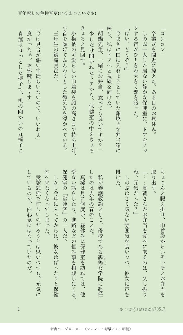 satsuki470517 @satsuki470517 藤室さつき(ふじむろ・さつき)と申します。🌊🦋字書き。過去にツイ上げした作品を中心にこちらにぼちぼちまとめていきます。(メディア欄が見づらくなってしまったので💦) ☆quiet follow Yell with Emoji POIPOI 14