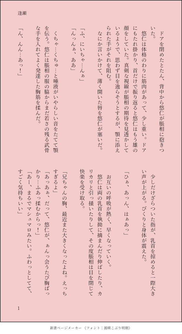 1sAvs☆quiet followDONE #お兄ちゃん24時!第二回テーマ「水浸し」ふわとろいちゃ甘の悠脹(カント)京都校預かりのちょそ(カント)と東京校のゆじくんゆじくんだけが知ってる秘密 show all(+3 images) Tap to full screen (size:618x1132).Repost is prohibited Let's send reactions! freqpopularsnackothersPayment processing Replies from the creator Follow creator you care about!☆quiet follow 1sAvsDONEホラーで書いた八尺様パロのお兄ちゃんとゆうじくんで、ショタおにのえっちパート(12ページ)襲い受けという感じで、うっすら他の弟も出るしお兄ちゃんの性格がもうなんでも許してくれる人じゃないとダメな気がする…母乳、濁点喘ぎ、ショタおに(襲い受け)、人外成人済みですか?(y/n) 12 1sAvsDONEちょその血を飲むえそくん壊脹壊な雰囲気。存記兄弟。現パロ 4 1sAvsMOURNINGえそくんとけちたんの骨で工作をするどこか壊れちゃったお兄ちゃん。まひとちょそ。倫理はどこへ?気持ちいい話ではありません。 10 1sAvsDONE存記兄弟 悠壊①(ゆじ→えそ⇒(秘めたる想いちょそ))突然思い付いついて突然致して突然立ち止まった悠壊…続きを図蓋骨さんが文章で書いてくれました続きは図蓋骨さん(https://poipiku.com/2039440/)のところでどうぞ☺️💕18歳以上ですか? 6 1sAvsDONE脹壊けちたん、えそくん生存図蓋骨さんに血刃バイブ概念を刷り込まれました。しゅ、しゅごい…無限の可能性…脹壊です。18歳以上ですか? 11 1sAvsDONE #ちょそ右ワンドロお題『添い寝』脳脹の雰囲気文 3 related works 1sAvsDONE #お兄ちゃん24時!第二回テーマ「水浸し」ふわとろいちゃ甘の悠脹(カント)京都校預かりのちょそ(カント)と東京校のゆじくんゆじくんだけが知ってる秘密 4 recommended works WA-IISDOODLEBest Big Brother คือพึ่งเห็นว่านิ้วไปโดนภาพเลยเบลนหลังจากนั้นก็หยุดมองไม่ได้แก้ในนี้ละกันอายจังหลังจากแก้และลงภาพไปแล้วพึ่งเห็นว่านิ้วไปเบลนที่ใหม่ปัดโถ่ๆๆไม่แก้ละ おきあいDOODLE脹相はいいぞ mayoigo_vitaminDOODLE単純に脹相カッコいいと思ってる。タイプです。 pixidonDOODLE単行本で念願の「どけ!!! 俺はお兄ちゃんだぞ!!!」を見ることができて感無量。16巻はお兄ちゃん満載だけど17,18巻辺りからは出番少ないんだろうな( ;∀;)でも17巻にはお兄ちゃんへの最大の『ご褒美』があるから……!世話が焼けるとか言いながら悠仁の為に身体張れるのが嬉しそうなお兄ちゃん、既に悠仁の思考まで把握し始めてて脹虎勢歓喜薄い本のページが厚くなる最高。 もろみDONE呪術は脹相が一番好き!! rntnxinranDOODLE雨夜 18 じもにゃんDONE冬インテでお配りしたコピー本です。 21 ZashacheDOODLE⚠️シャアム ⚠️男性妊娠 / オメガバース 3+1 蛙翁🐸DONE【18日目】背中合わせ共闘脹&鹿久々にバトル漫画風に仕上げれたかな?