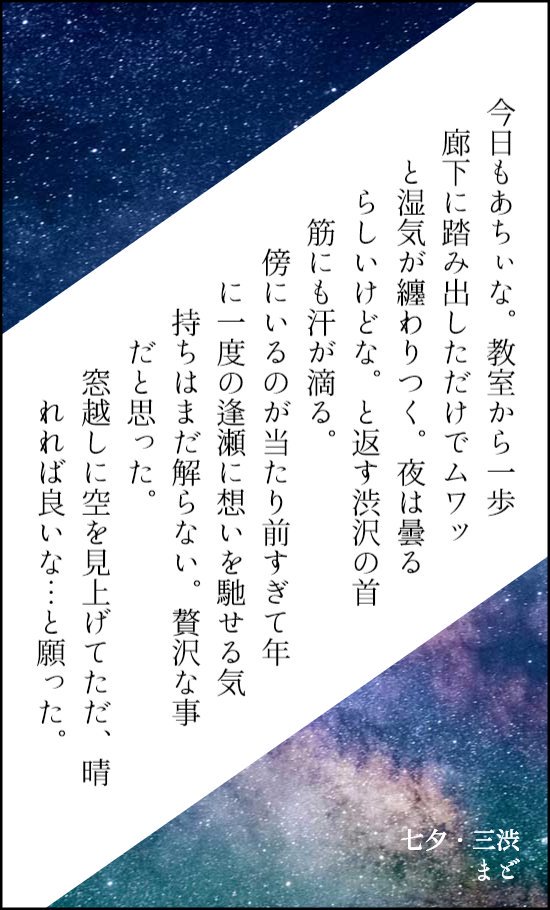 SS名刺メーカーに収まらない長さのお話はpixivに置いています。そちらもご覧頂けたら嬉しいです(*´ ` *)💓
