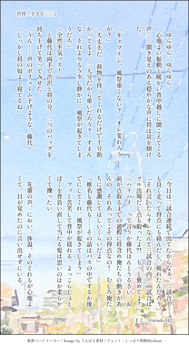 SS名刺メーカーに収まらない長さのお話はpixivに置いています。そちらもご覧頂けたら嬉しいです(*´ ` *)💓
