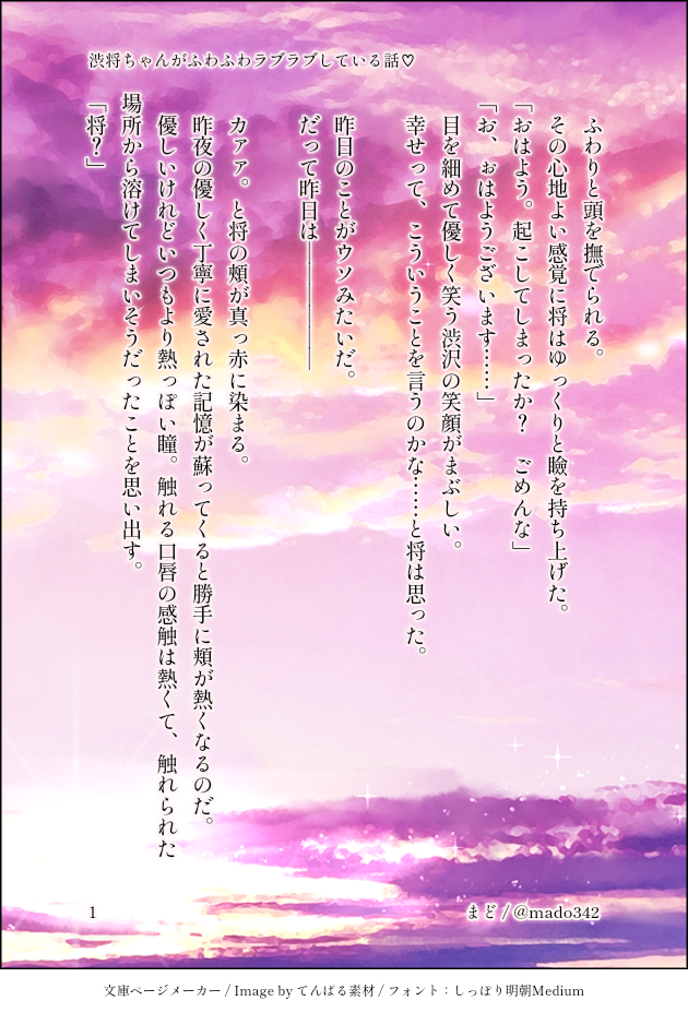 渋将ちゃんが朝を迎えてフワフワしてるお話です(*´ ` *)