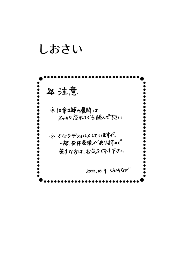 10/9開催コシチェイwebオンリー「デッド・デッド・リベンジャー」のための展示作品でした。しばらく限定公開にしていたのですが時間が経ったため全体公開します。