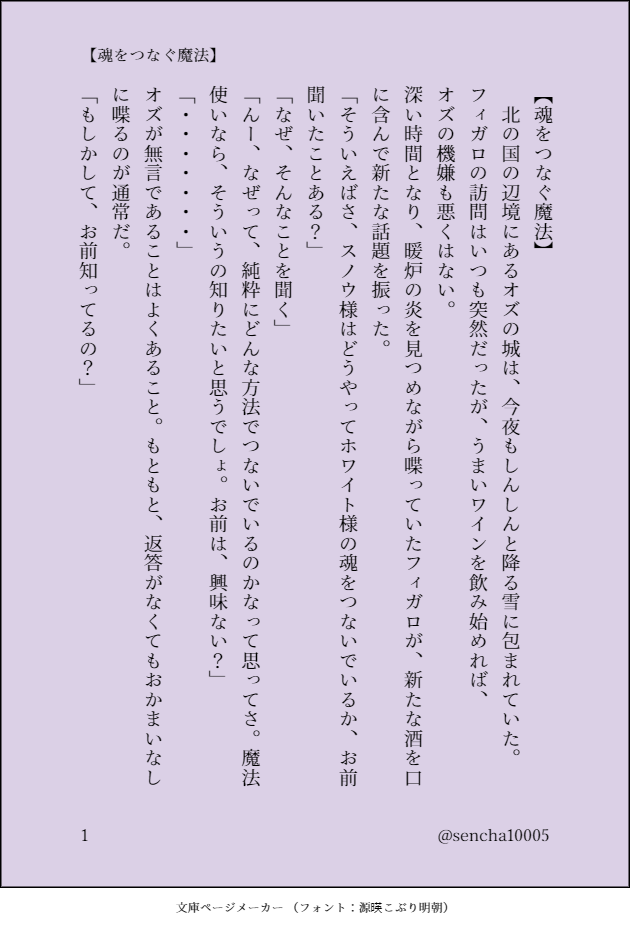 せんこ☆quiet followDONE【魂をつなぐ魔法】フィガロとオズが酒を飲みながら ##北師弟 show all(+2 images) Tap to full screen (size:630x928).Repost is prohibited Let's send reactions! freqpopularsnackothersPayment processing Replies from the creator Follow creator you care about!☆quiet follow せんこDONEカイアサ8月のお題から【長期休暇】をお借りしました。無限の可能性を感じます! 3 せんこDONEいつもお世話になっている、中央主従マンスリーお題から【誰のせいで】をお借りしました。ありがとうございます。2部5章6章によって、賢者も心乱れております。 5 せんこDONEいつもお世話になっている、中央主従マンスリーお題の【虹】をお借りしました。ありがとうございます! 4 せんこDONE今日は5月のラストデー。ギリギリ。今月のお題【ステップ】をお借りしました。少々拡大解釈?かもですが、楽しい雰囲気のカイアサ。カギかっこがうまく変換できてない、ごめんなさい。 4 せんこDONEパラロイWEBオンリー新作展示。スノウとホワイトが喧嘩をしたあとの、3人のお話。カルディアシステムの成長がかれらに新たな展開を与えてくれますように。 9 せんこDONEパラロイwebオンリー新作展示。アシストロイドのスノホワとフィガロ博士のほのぼの小話。ふたりが喧嘩をしない世界線。 10 recommended works ma pinDOODLE micCco_63DONEつよきず死ぬな〜〜〜 3 LifPROGRESSWIP ⚰️⌛️ masamune58DOODLEねまきTシャツかわいいつむぎさん tosakanDOODLE触手×禊ユーズの微エロ気持ちは禊セムユズなので、多分この後お清め叡智でイチャイチャする禊ユーズさんは劣情ポイントが多すぎて全ユーズの中で一番即堕ちが似合うという偏見をもってますハイ 🥫🥫🥫DOODLEにょた🍷R15絵あるじさまを誘うえちちなバニーメイド服を着たむちむちにょたるかおねえさん💕のらくがきです。 jasmine_525mlDOODLEおためしだよ tamaの岩さに置き場DONE岩さに初夜話に向けて〜三条飲み編の続き〜 5 sirohumoSPUR MEフォロワーさん