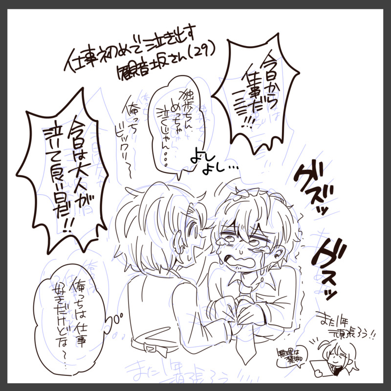 m_makise☆quiet followPROGRESSお仕事の日にアップしようと思ってフルカラーで色塗りもしたんだけど、たったこれだけの情報量で色塗りに線画の5倍くらい時間かかっちゃったので本当に色塗りって大変だ…フルカラーマンガ描かれてる方は一体どうしているんだ……??って宇宙になっちゃいました。 Tap to full screen (size:1162x1161).Repost is prohibited m_makisePROGRESS用事片手間にやってて完成させられなかった、セールが終わってしまうやん……!!! m_makisePROGRESS下描きまでしかできなかったエンジェルウィスパーのファンアート、まだ序盤も序盤なので本編の変更点が楽しみで仕方ない!!こういう構図を取ると、どうしても古のペーパーみたいになる、古のオタクなので。。。(下描きなので名前とか超適当に描いてしまってた、ごめんなさい、間違ってる) m_makisePROGRESSめ~~~~~っちゃ久し振りにお絵描きしました、いつも「もしかして、もう描き方忘れてるのでは…」とビクビクしてしまいます、全然忘れるとかないんだけどね、長年乗ってないチャリにいきなりでも乗れるみたいなね。続きはまた今度! m_makisePROGRESS今日中に終わらせたいんだけどキツくなってきた~~!背景の処理が特にヘタクソで、レイヤー数がとんでもない事になる……線画も1キャラ毎に全部パーツ分けしてるくらいレイヤーだらけだよ。 m_makisePROGRESS6/8p目寝るまでに後1p終わらせて明日仕上げと洒落込みたいぜ…! m_makisePROGRESS5/8p目縛り実況を観ながらポツポツ作業を続ける……昔のニコ動のノリが大好きなので古い動画見るの楽しい!