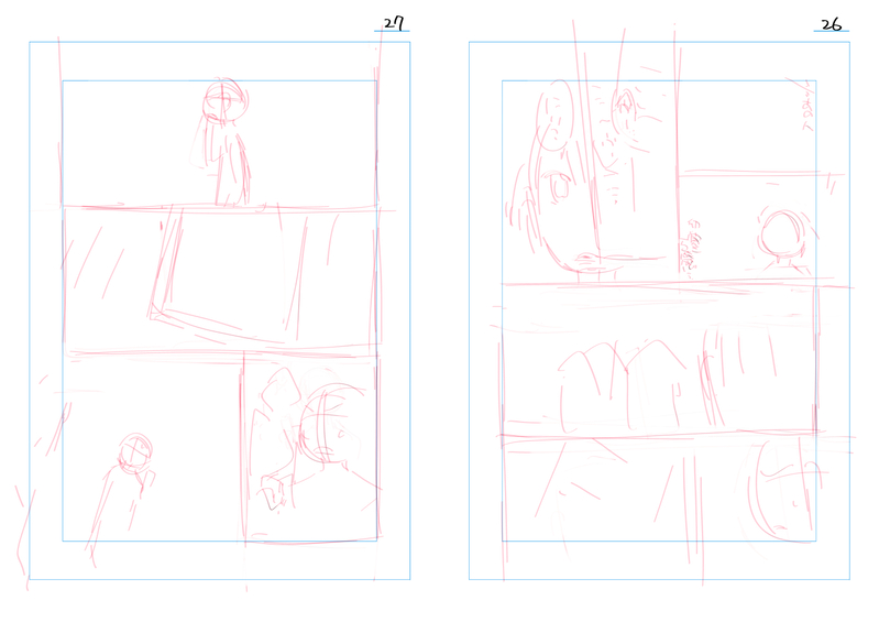 私のネームの最初の段階ってマジでこれなんですが、進行がすごいひどいと「もうそれでいいです」と言われてこれを泣きながら提出して(セリフは打ち込みますが絵はこの状態)「オッケーです」って返事返ってくることがあって、担当さんのネーム解読力に驚愕します……何が描いてあるのか私でも時々わかんなくて作画の時に困るのにな……