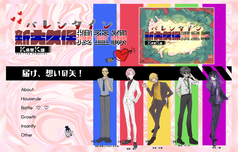 Lonely8239☆こそフォロメモ2/14 CoCシナリオ『バレンタイン♡新大久保捜査線』KP/HO妄執:まっちょ/幸丸 一緒HO法螺吹き:メタちゃん/池梁 枡寧HO好色:知里さん/指宿 撫子HO守銭奴:雨飾/金求 札舞HO無能:ヤス/独活 すゞき すべて表示(+1枚) タップで全画面(原寸:1344x858)無断転載禁止 リアクションをたくさん送って応援しよう! よく使う人気おやつその他支払処理中 作者からのリプライ 気になる人をどんどんフォローしよう!☆こそフォロ Lonely8239メモ2/14 CoCシナリオ『バレンタイン♡新大久保捜査線』KP/HO妄執:まっちょ/幸丸 一緒HO法螺吹き:メタちゃん/池梁 枡寧HO好色:知里さん/指宿 撫子HO守銭奴:雨飾/金求 札舞HO無能:ヤス/独活 すゞき 2 Lonely8239メモ1/30 よ海くだりKP:りじゃPL:雨飾/尾来 都来 メタちゃん/村長 央太 ヤス/蠑螈 松葉 知里さん/茅埜 伊万里 Lonely8239メモ2025/1/6,10,17,18新CoC「イザナミの棺」KP:おそふらさんHO1:知里さん/諫早 ゆらぎHO2:雨飾/副島 紋 3 Lonely8239メモ1/11 CoC「豪華客船の上で暴れまわるティラノサウルス」KP:メタちゃんHO1:雨飾/Loretta WalsterHO2:ヤス/ザウルス永久田HO3:知里さん/ 篠流 虹音HO4:ヒサカさん/沢渡 飛嶺 2 Lonely8239メモ2023/12/15~2026/1/5 (置き卓)CoC「不眠怪奇譚」KP:雨飾PL:ヤス/季白 昭四郎 Lonely8239らくがき2025立ち絵まとめ 3 おすすめ作品 むにお自主練5周年えーすくんかわいいしかっこいい…色塗り練習 けーあーるらくがきこれは○○本を読んでオーバーヒートした妖夢ちゃん まじきりらくがきまほやく次イベ楽しみ うさぎさんできた今度のN◎VAで使うInu◎,Kabuto-Wari●=Kabuto-Wariだよ ë…!らくがき今年の漢字考え中… おちゃっぱ。らくがきかにゃかにゃ🐈⬛ おかん(67)らくがきハムちゃんは時々寒そうに片足あげてる😅 AKIRA過去のを晒すその昔P-BBSで描いたらくがきたち2幻想水滸伝2の女の子キャラの髪型を変えて遊んでみました。(ラストだけ男の子) 10 AKIRA過去のを晒す絵チャログと手ブロログ。置くとこないのでここにぽいぽい。 5