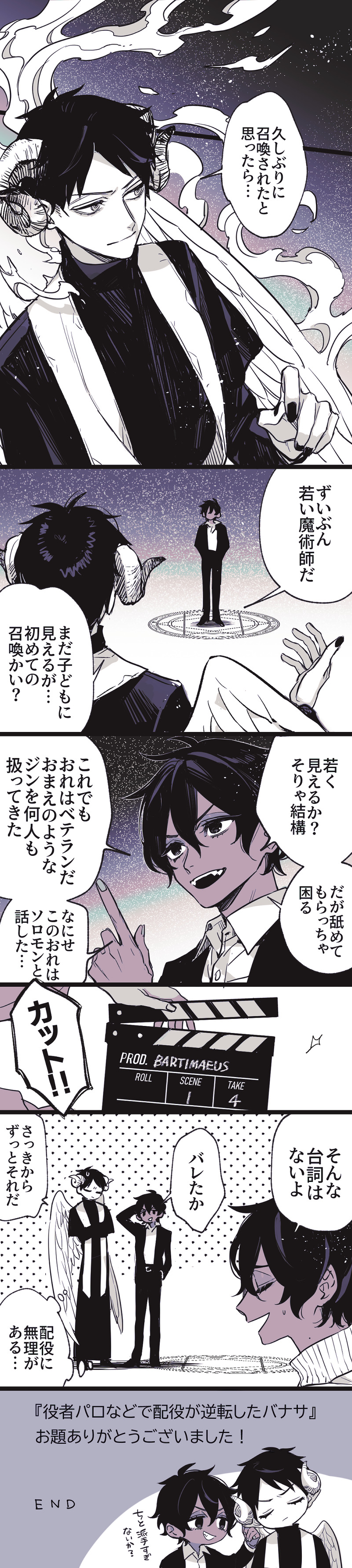 pompomnium☆quiet followDOODLE役者パロで立場逆転ネタのバナサです(役者パロなのでプトもいるしみんな人間設定)お題ありがとうございました!ナサニエルの格好に厨二とヘキを詰めすぎてしまった……バーティミアスはバトンさんタイプの浮世離れした魔術師やってそう #バーティミアス BARTIMAEUS Tap to full screen (size:891x3963).Repost is prohibited Let's send reactions! freqpopularsnackothersPayment processing Replies from the creator Follow creator you care about!☆quiet follow pompomniumDOODLEGEでナサニエルが約束守ったことによってバが独断でナを守り逃亡を決めてルート分岐するバナサ(と解釈しました)のお題ありがとうございました!オチに難航しすぎて長らく寝かせてしまいました尺が許すなら色んなルート描きたかった 7 pompomniumDOODLEぼちぼち原書感想描いたことない大臣付きしかしここら辺のバはナサニエルにずっと文句言っててかわいいやらおいたわしいやら pompomniumDOODLEエジプト組 pompomniumDOODLEあとでアマンダと夫人もいれるかも?二枚目はハゲちゃんバージョンなので好きな髪型足して遊んでください 2 pompomniumDOODLE間が空きつつ原書感想プトは達観した善性を発揮してる瞬間よりもそこそこ年相応な瞬間が好き pompomniumDOODLE大遅刻バナサの日!あとで加筆修正すると思われる 2 related works pompomniumDOODLEプトとバ pompomniumDOODLEフェイキアールとナサニエルフェイキが人間に対して友好的な視点を持てることがあったなら色々死ななくていい人たちが死なずに済んだ未来もあったかもしれないと思うけどこのふたりだとそもそも絆を築けるのかしら…。ナサニエルの名前を知った時点でバのようにその名前を守ってくれたかもわからん(契約関係切れたら約束を反故してたかもしれない)逆にラブレースの下で働いてるバ想像できないな… pompomniumDOODLE2巻原書感想そのに!レジスタンス団の全然仲良くない感じがかわいい pompomniumDOODLEバナサキティっぽい pompomniumDOODLE私がおかっぱのバーティミアス(プト)描くと少女すぎてしまうバは他の人のキャラデザ見るのも楽しいジャンルだなとおもいます pompomniumMAIKING完成するかわかんなくなってきたかきかけのバ pompomniumPROGRESSバの爪眺める仕草かわいいよね〜 pompomniumMAIKING外伝この前のシーンから描いてたけどここだけピックするにあたり自分で名前呼ばせちゃった pompomniumDOODLE再熱して一番最初に描いたやつ recommended works pompomniumDOODLE本編シーンの描き起こしこのシリーズ(?)、大体「あのシーン好きだったな、こんなイメージで読んでたな」と先に描き出した後に原作読み返して台詞入れていくので、台詞が全然入らないこと多い pompomniumDOODLE古代エジプト組アッファは不意打ちというか、臨戦態勢が整う前に命を落として、テティとペンレヌテトが時間稼ぎしてる間にバがプトを連れて逃げた、というイメージがある前後もあったけど、アッファ・テティ・ペンレヌテトが捏造も捏造すぎる出来になってしまったので割愛 pompomniumDOODLE入れる台詞を忘れたせいでおくら入りしてた妖霊トリオ好きな台詞入れて遊んでください pompomniumDOODLE3巻ラストの台詞日本語版の「ナサニエル……」はそこで言い終わった台詞だと長年ずっと思っていたけど、原語版だと“Nathanielーー”だったので、本来は台詞が切られてる演出だったのか……と結構衝撃だったどっちも好き pompomniumDOODLEクィーズル+フェイキも+ジャーボウも pompomniumDOODLEフェイキとクィーズル妖霊たち仲良くしててほしい pompomniumDOODLEバナサでちゅーしてる pompomniumDOODLEバナサこのバーティミアスは二巡目なのでナサニエルに対しての愛情がカンストしている 2 pompomniumDOODLEあごひげ 2