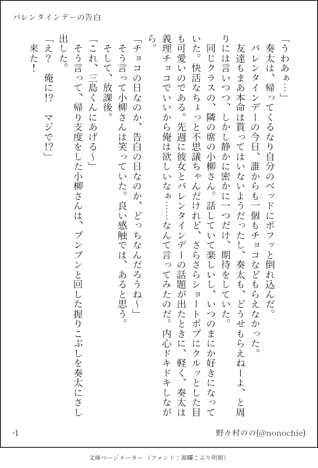 野々村のの☆quiet followMAIKING「バレンタインデーの告白」ヘテロ、かわいい恋愛のからむお話の序章部分かな、続きは果たして書けるのかしら。 show all(+3 images) Tap to full screen (size:630x928).Repost is prohibited Let's send reactions! freqpopularsnackothersPayment processing Replies from the creator Follow creator you care about!☆quiet follow 野々村ののMAIKING「バレンタインデーの告白」ヘテロ、かわいい恋愛のからむお話の序章部分かな、続きは果たして書けるのかしら。 4 野々村ののMAIKINGAIのべりすとに恋愛ものの導入を書いて渡してみるテストGL編2000字でまだやっと告白シーン 5 野々村ののMAIKINGAIのべりすとに恋愛ものの導入を書いて渡してみるテストBL編1000字でもうあっさり付き合ってキスまでしてた 2 野々村ののTRAININGヘテロエロ~R18(修正いらないものからありのものまで)絵の自主練など絡み描くの好きなんですtkbはここでは修正いらないような気もするけど 5 野々村ののTRAININGオリジナルヘテロR18(NSFW)エッチの鉛筆落書きです。ごく普通にラブラブのつもり。 2 野々村ののREHABILI猫の日。うちの本の幼馴染みカップルです。結局実は最初から誘ってます。