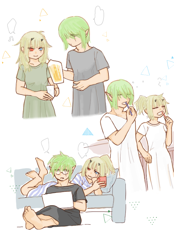 男性もコットンワンピを着よう記事を見かけて、うちかぷでくつろぎコットンワンピお揃い~