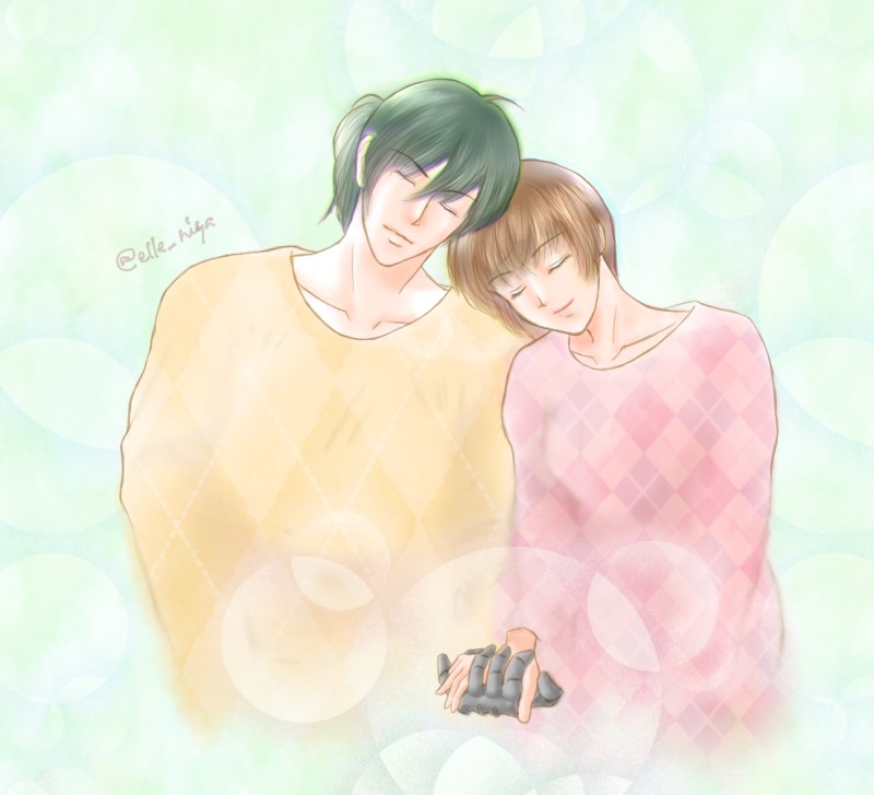 お互いにもたれかかって眠ってる宜朱。