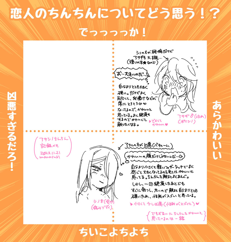 隔離用☆quiet followDOODLE腐向け*アサシノち…んメモです*メモがちんのため、内容がセンシティブです。素敵なテンプレートお借りしました! show all(+1 images) Tap to full screen (size:1893x1983).Repost is prohibited Let's send reactions! freqpopularsnackothersPayment processing Replies from the creator Follow creator you care about!☆quiet follow 隔離用PROGRESS腐向け*アサシノ新刊下書き進捗*前半の作画が終わりました日記 残り47pくらい 6 隔離用DOODLE※女体化 アサシノ♀によるお風呂タオルらくがきです お風呂上りに牛乳一緒に飲んで・・・・・・ 隔離用PROGRESS腐向け*新刊ネーム進捗*アサシノ前提による、シノアサのシーンなので、シノくんがこういう事思ってそうで最高のコマです 隔離用PROGRESS腐向け*アサシノ新刊成人向け進捗*後半部分1ページ目ネームです※成人向けの内容は同軸リバになるため(アサシノ前提シノアサ、途中逆転アサシノ)好き放題をしています。俺が1番欲しくて見たい本に仕上げます。 隔離用DOODLE腐向け*アサシノ友達以上恋人未満いちゃいちゃまんが お互いに好きすぎてモヂョモヂョしている2人です ※二人以外のギルメンが登場してます 3 隔離用DOODLE腐向け*朝起こしてもらいたいアサギの、アサシノまんが※少し重たいです 6