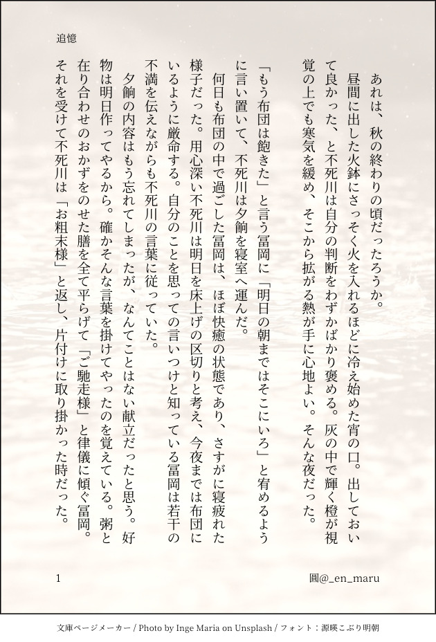 圓_en_maru☆quiet followMOURNINGさねぎゆ版ワンドロワンライアカウント様のお題「最後の」で書いたものです。余生 がっつり死ネタです。 #さねぎゆ #ワンドロワンライ show all(+6 images) Tap to full screen (size:630x928).Repost is prohibited Let's send reactions! freqpopularsnackothersPayment processing Replies from the creator Follow creator you care about!☆quiet follow 圓_en_maruMOURNINGさねぎゆ版ワンドロワンライアカウント様のお題「最後の」で書いたものです。余生 がっつり死ネタです。 7 圓_en_maruDONE🍃🌊余生 全六枚少しいちゃついてます 6 圓_en_maruDONEさねぎゆ 余生 ぬるく血の表現あります 5 related works ごしょDONE天の川といえば……からの乳吸いに発展する頭悪いさねぎゆ♀のスケベです。ただの下ネタです。 1139 浅羽(成海周)MOURNINGさねぎゆ詰めショタ諸々 5 kuroyagi89DONE※とみをかさん先天性にょた設定 3 浅羽(成海周)MOURNINGトレスフリーお借りしたさねぎゆぎゆさん短髪 hatikuyaDONE🚨さねぎゆ♀♀にょたゆり🚨じっとり情念イチャイチャ漫画です双方ヤンデレなのでご注意下さい 5 ひまわりまりこDOODLE昼間の落書きともう1パターン追加分(笑) 2 ユリタPAST⚠️R18手合わせの後、🎴くんと👁️ちゃんが「水を差さなかったら」こんな🌃🔑password18歳以上ですか?(yes or no) 11 hanahujiDONEねこのひ遅刻 2 kame2kmtPROGRESS6月新刊進捗 4 recommended works kagajyoh86PROGRESSさねぎゆ本の中身。途中のやつ。とりあえずテストで上げてみます。 4 motimoti_babyDOODLE同棲している現パロのさねぎゆ。 0421happy_lifeDONEさねぎゆ版さワンドロワンライ【お題:夏の夜の夢、未熟、まばたき】で書かせていただきました。現代設定。一緒に暮らしている二人が、🌊が連れ帰って来た生き物をどうするかで喧嘩する話です。データが飛んで書き直したら、更に長くなってしまいました💦主催者様、読んで下さった皆様、ありがとうございました! 8274 kagajyoh86DONE以前発行したさねぎゆ本です。見て下さった方!ありがとうございます!!「初夜は優しく甘く」さねぎゆの初夜話です。 23 SamaelDOODLE愚勘和熔流(虽然熔火没出镜/目移) 2 ばころPAST2024年3月辺りまではあまり描けてなかったけど今年はわりとお絵描きできた1年でした🙆♀️ Tanadaaaaaa1DONEリクエスト 21 マイクラ大好きDOODLEまほろりのイラスト…やっとまともに上げましたねーーーー(遠い目) 一部自キャラが入っていますがお気になさらず。 6 PremmyDONEMerry Christmas 2024 na ขอถวายวิญญาณให้เหล่าเขยใภ้ที่น่ารักของผมครับ ขอบคุณครับ/พับไมค์ 5