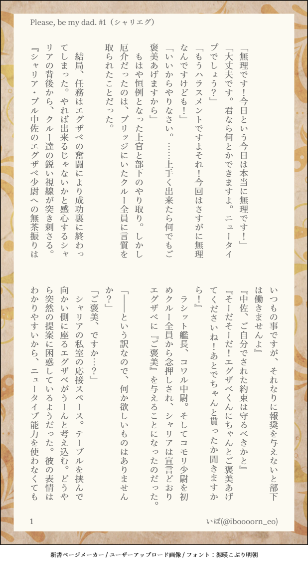 iboooorn☆quiet followDONEシャリエグ🟩🟧「僕の父親になってください」1※不定期に続きます show all(+3 images) Tap to full screen (size:618x1132).Repost is prohibited Let's send reactions! freqpopularsnackothersPayment processing Replies from the creator Follow creator you care about!☆quiet follow iboooornDOODLE10月シャアシャリ新刊「レイトスタートの恋をしよう.」R-18部分サンプル(ぶつぎり)18↑?(y/n) iboooornDONE8/31発行🟥🟩結婚式本「約束のMariage」アフターストーリー2本。読後に読んでいただけるとありがたいです。 5 iboooornPROGRESS10月の🟩🟧Dom/Sub本のルビをつけている アホのルビ芸 y/n iboooornMOURNING🟥🟩現パロホラー②1枚目に注意書きがあります。 9 iboooornDOODLE「My love it!」(シャアシャリ)0079🟥🟩バニーの日。🐰になった🟩。ゆる🔞 y/n 6 iboooornDOODLEウワサのふたり1(シャリエグ)実力派俳優🟩×人気アイドルグループのセンター🟧原稿の合間に俳優ドルを…… 9 recommended works nanPAST好き設定やパロをもとに描いたソル受け再掲です。腐向けのためワンクッション 10 げすいどうDOODLE年齢操作(いつもの)気持ち的に載せ辛いんですよね。なんでやろなぁ 2 _ShimeasabaDOODLE福ちゃん練習 晶(しょう)改め“長谷河海音”DOODLE 24 たまおDOODLE性癖パネルトラップの9(?)番「ローションガーゼ」描かせて頂きました!9番てどこも生えるもんなんだね笑普通にライがされる側にしちゃったんですが逆を期待してたら誠にごめんなさいカブは手と台詞しかありません、こっちもごめんなさい18歳以上ですか?Are you over 18 years old?(yes/no) みやちかDOODLE幼馴染(5) okacharuDONE創作図書館BL26 鬼束桜という女 11 Kikurage545711INFO「愛飢ゑヲワル」作:二乗機関様KP/KPC:Kikurage/ポン・ゴ・ウェンペPL/PC:小西さん/古賀ナツメシナリオクリアめっちゃ楽しかったです!!「ナツメちゃん、このパイシチュー、美味しいな!」 e_p_adcDOODLE昨日のお誕生日配信の。演劇愛が伝わりました。