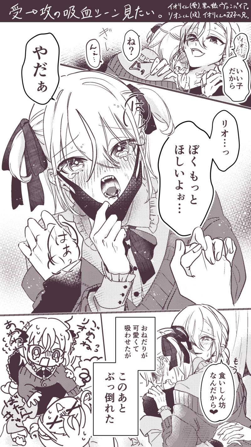 ヴァンパイアをきいてから受けがヴァンパイアなの性癖になりましたという一連の絵です。