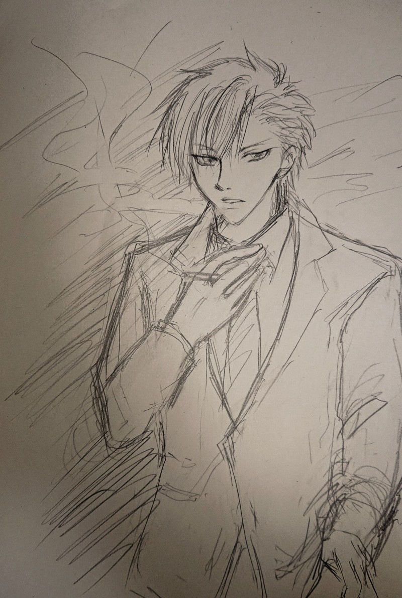 スタマイ絵。夏樹くん追加。煙草持たせてみました。喫煙組の楽しみですねコレは。今度関さんにも煙草持たせてみよう。