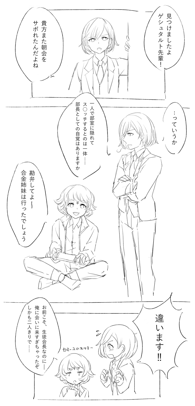 lieti589☆quiet followDONE[お題箱]学パロのゲシュタルト&カミーユを見たいです!-ゲシュにぺちゃくちゃなカミ、カミにちょっと意地悪なゲシュこの関係性は好きです。 #ラスピリ lastperiod #ゲシュタルト gestalt #カミーユ camille. #カミゲシュ Tap to full screen (size:1200x2500).Repost is prohibited Let's send reactions! freqpopularsnackothersPayment processing Replies from the creator Follow creator you care about!☆quiet follow lieti589DOODLE「お返しをいただく」 lieti589DOODLE「これをくれて、ありがとうございます。かってに本命チョコだと思っても……いいかな?」 2 lieti589DONE[お題箱]男の娘っぽいショタ化カミゲシュのお揃いコーデ私服姿-「やった!こんかいかみーゆもしょたね」「はい……?」リクエストありがとうございました!気に入っていただければ幸いです私普段イケショタの方が好きだなぁ~(カミちゃんかわいい) 2 lieti589DONE[お題箱]クリスマスに休暇を取ってゆっくりしているカミゲシュ-文字を見ているだけで幸せが溢れる、公私混同なカミゲシュ最高でした。リクエストありがとう~~忘れちゃってごめんね!クリスマスに間に合ってよかった🥰 2 lieti589DONEハロウィンカミーユ&ゲシュタルト 2 lieti589DONEWDカミーユ&ゲシュタルト related works lieti589PASTリェティのカミゲシュ軌跡(更新し続けます) 5 lieti589DONEWDカミーユ&ゲシュタルト lieti589SPOILER※腐向け(カミゲシュ)ですこれでいろんな妄想ができそう。ありがとう絵師様 2 lieti589DOODLE「これをくれて、ありがとうございます。かってに本命チョコだと思っても……いいかな?」 2 lieti589DOODLE※腐向け(カミゲシュ)ですぐっ…… 2 lieti589DOODLE※腐向け(カミゲシュ)です「貴方はこの国の希望なんです」 2 lieti589DOODLE※腐向け(カミゲシュ)です誰が撮ったのかな 2 lieti589DOODLE「お返しをいただく」 lieti589DOODLE※腐向け(カミゲシュ)です※2部9章と新ゲシュさんユニストネタある 2 recommended works az___6TIRED #ラスピリ去年ごろのやつ mgmsTIRED #ラスピリ試しに投稿 穹野(そらの)DOODLE 2 munica_lp_gamesDONEメルディアさんおたんじょーびとアクキーにしたいルーイくんのデフォ 2 az___6DOODLEバレンタインオルデンママ楽しみ🍫 munica_lp_gamesDONEアクキーにしたいねっていうかするつもりのお絵かきです船長は良いぞ ふりゃMEMO az___6DONEリクエストイラストでした、アムちゃんとアンジェラちゃん 2 Into_the_OhDONE我慢ならナハ