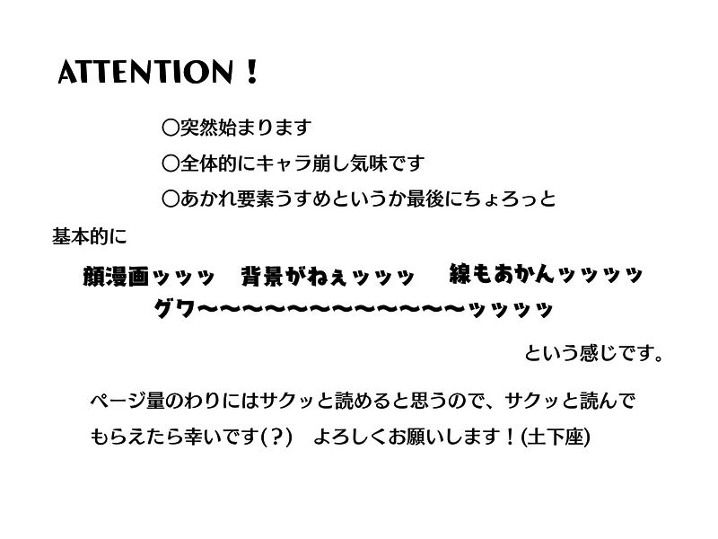 ryo5033☆quiet followDONE◆9/25あかれんwebオンリーにて展示用の漫画でした 「風鈴」(現パロ設定) show all(+18 images) Tap to full screen (size:800x600).Repost is prohibited Let's send reactions! freqpopularsnackothersPayment processing Replies from the creator Follow creator you care about!☆quiet follow ryo5033PAST久しぶりに龍アラに反応もらえて嬉しかったけど手持ちに真新しいものがなくて…笑支部にまとめてない(と思う)ちょっといかがわしめな龍アラ(いうてほぼアラジンのみ)を投げておきます…!3枚目はおフェラーリなので背後注意!(2枚目も注意かな?)えっ、というか2枚目も3枚目も描いたの2020年ですってこわぁ…(震)あんまえっちではないんですけど念のためパスつけときます〜18↑?(y/n) 3 ryo5033DOODLE映画見ててなんかここの切り方違和感かなぁ〜?と思ったとこです。こんなことあったらいいなのふんわりとした妄想ですが全体的に真っ白&殴り書きmrfs兄弟かわいいよかわいいね… 7 ryo5033DOODLEおっさんのぉ…ちょっとえっち(?)なお顔描きたくなってぇ…ヘ、ヘヘヘ……流石にTLには流しにくいのでこっちに投げ😂 ryo5033MOURNING241108最初の二枚だけのらくがきのつもりがおまけも増えてずっと触っちゃうので諦めてここに供養🙏ユリレイちゃん大好きだけどむつかしいね〜〜っ 4 ryo5033MENU◇4/15 hoo9用のネップリ案内です!4/30まで印刷可能です!ローソン/ファミマ※はがき印刷/ましかくプリント/シール印刷はコピー機によっては出来ない可能性があります 7 ryo5033DOODLE◆前にあかれん真ん中バースデーを描いた時のを見つけたのでお花関連ということで(?)再掲!謎時空だけど🔥は生きてるし座くんはむざんくんの支配を逃れているうえ、🔥の管理下のもと、きさつ隊に属する形になってる世界線…顔の刺青は目立ちすぎるのでお化粧で隠してるよ!(隠れるのか?) 5