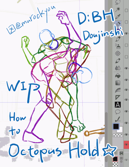 まんじ固めを仕掛けるコナーくんの絵です、プロレス技は複雑なのでパーツごとに色分けして描きます 実際は小さい絵なので線が太いです