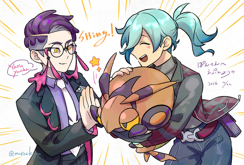 ぽんさん(X: @kcks968910 )のZA主人公ちゃんと推しちゃん達を描かせていただきました🤗ボスと並ぶと髪の色が補色ですからお互いに映えてキュートですね🥰お喜び頂けてハッピーです❣