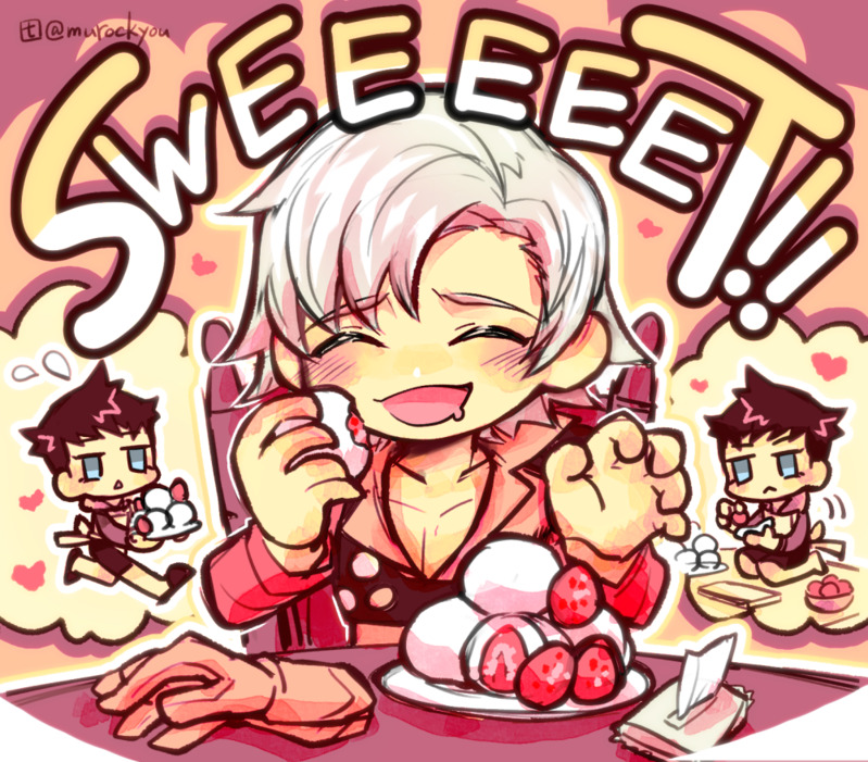 人修羅くんに苺大福作ってもらってIQ下がっているダンテ主の絵です🍓Dante&Demi-fiend