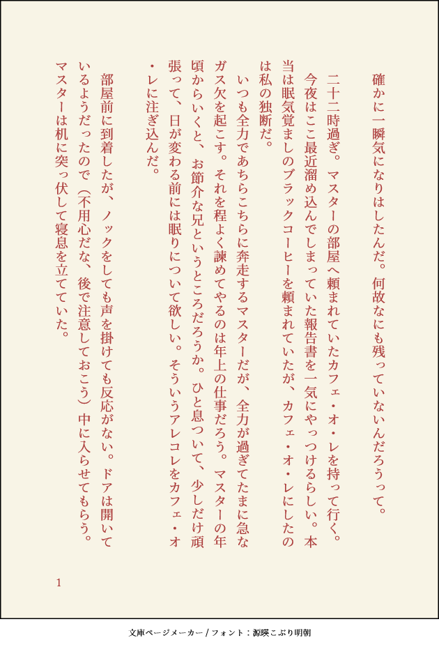 nemunemu5813☆quiet followDONE20210608公開フラグはまだ立たない/エミヤ×ぐだ♀4p※適当なカルデア設定※マスターに対するお兄ちゃん度が高めのエミヤ ##エミヤ show all(+3 images) Tap to full screen (size:630x928).Repost is prohibited Let's send reactions! freqpopularsnackothersPayment processing Replies from the creator Follow creator you care about!☆quiet follow nemunemu5813DONE20240729公開王はかく語りき/若プト→ぐだ♀(老プトぐだ♀前提)20p※コンセプトは「老プトぐだが致したのちに死ぬほど嫉妬に狂う若プト」※適当なカルデア設定※えっっっぢな描写は老プトぐだ♀のみ※老プトぐだ♀前提の若プト→ぐだ♀という特殊設定のため、苦手かも…という人は読まない方がオススメです。読後の苦情は一切お受けできません。※パスはついったに書いてます。 20 nemunemu5813DONE20221126公開≪蘭陵王スイッチ≫【ら】ランチ/蘭陵王+Arts宝具セイバー2名(cp要素なし)5p※適当なカルデア設定※蘭陵王くんが食事時にちょっと困っちゃう話 5 nemunemu5813DONE20221126公開≪蘭陵王スイッチ≫【こ】コンちゃんといっしょ/蘭陵王+コン9p※適当なカルデア設定※蘭陵王くんとコンちゃんが仲良くなる話 9 nemunemu5813DONE20201229公開願いが叶う券 第4話(最終話)/蘭ぐだ♀全36p※適当なカルデア設定※ぐだ♀は蘭陵王のことを「蘭くん」と呼びます※こちら(https://poipiku.com/169832/7893122.html)の続きですが、これ単体でも読めます 36 nemunemu5813DONE20201229公開願いが叶う券 第1~3話/蘭ぐだ♀全21p※適当なカルデア設定※ぐだ♀は蘭陵王のことを「蘭くん」と呼びます※最終4話はこちら(https://poipiku.com/169832/7893135.html) 21 nemunemu5813DONE20210708公開それでいいよ/蘭ぐだ(ぐだ蘭)7p※適当なカルデア設定※重たい話(当社比)※セックスしないと出られない部屋に閉じ込められる話※でも健全な話なので誰でも読める 7
