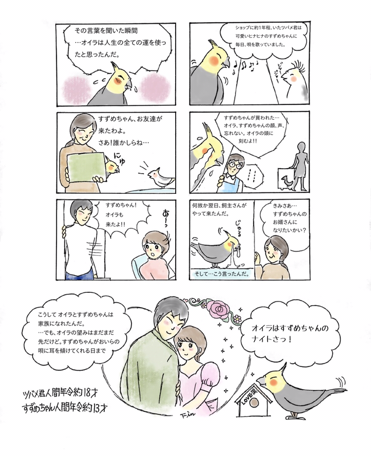 創作・インコ擬人化と彼らの人間界転生編の2種類あります。