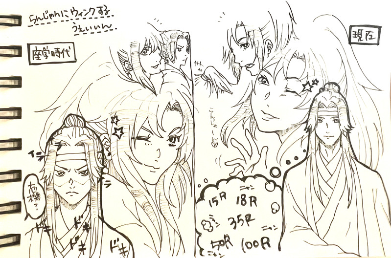 藍湛にウィンクする魏嬰ちゃん。