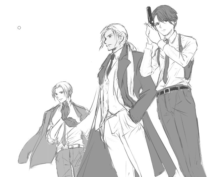 レッグホルスターって軍用の重装備らしくて、脳内の、絵に説得力つけろ勢が今のところ勝ってしまった😢