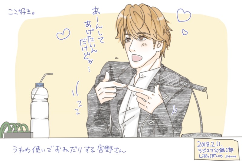 oskn_js☆quiet followDONEラジスマ公録1部。公録だけのコーナーでのワンシーン。(公録当日現在)昨日付き合ったという彼氏とのバレンタイン話。マモ「じゃあ、彼氏にチョコあーんしてあげたらいいよ!」って話していた時のあざとい宮野さん。 ##レポ Tap to full screen (size:1050x700).Repost is prohibited oskn_jsDOODLEあけましておめでとうございます。子年もよろしくおねがいします。 oskn_jsDOODLEこれは2019年の1年間アイコンにしていたイノシシ男 oskn_jsDOODLEこれはおげんさんといっしょ第3回目が放送された時に描いたやつ oskn_jsMAIKING oskn_jsDOODLE2019.12.10 WSS Season1アフタートークショー”TOBIの部屋”のメモ。司会のTOBIさんと、宮野さん、笹本さん、樋口さん。15分ほどのトークだったけれど、色んなお話が聞けて楽しかった〜! 4 oskn_jsDOODLEぴんぽん recommended works oskn_jsDONE2016.1.17(2日目) プリライ5thマジレン1000%っぽいもの oskn_jsDONE2017.6.3 ラフピファンミvol5 2 oskn_jsDONEMAMORU MIYANO LIVE TOUR 2017 LOVING!衣装とセトリのメモ。 4 oskn_jsDONEMAMORU MIYANO LIVE TOUR 2017 LOVING!マモのかわいかったとこ。地方公演フリートークごちゃまぜ。 2 oskn_jsDONEラジスマ公録1部。メールをうーんて読む時の癖がかわいすぎた。 oskn_jsDONEラジスマ公録1部。公録だけのコーナーの時やメールを読んでいる時の癖② oskn_jsDONEラジスマ公録1部。公録だけのコーナーでのワンシーン。(公録当日現在)昨日付き合ったという彼氏とのバレンタイン話。マモ「じゃあ、彼氏にチョコあーんしてあげたらいいよ!」って話していた時のあざとい宮野さん。 oskn_jsDONE2018.5.19 GODZILLA 決戦機動増殖都市の舞台挨拶。ハルオとユウコの予告シーンでみんなから「キスしてる〜!」って冷やかされて照れてる時の宮野さんかわいかった。 oskn_jsDONE2018.7.15 銀河英雄伝説イベント閣下は何を見ておいでですかゲームの時に宮野さんが「これ、僕がボケまくれる最高のゲームじゃないですかあ!✨」って嬉々として椅子に長い脚ぶん投げて座ってたのとてもよかったです。 4