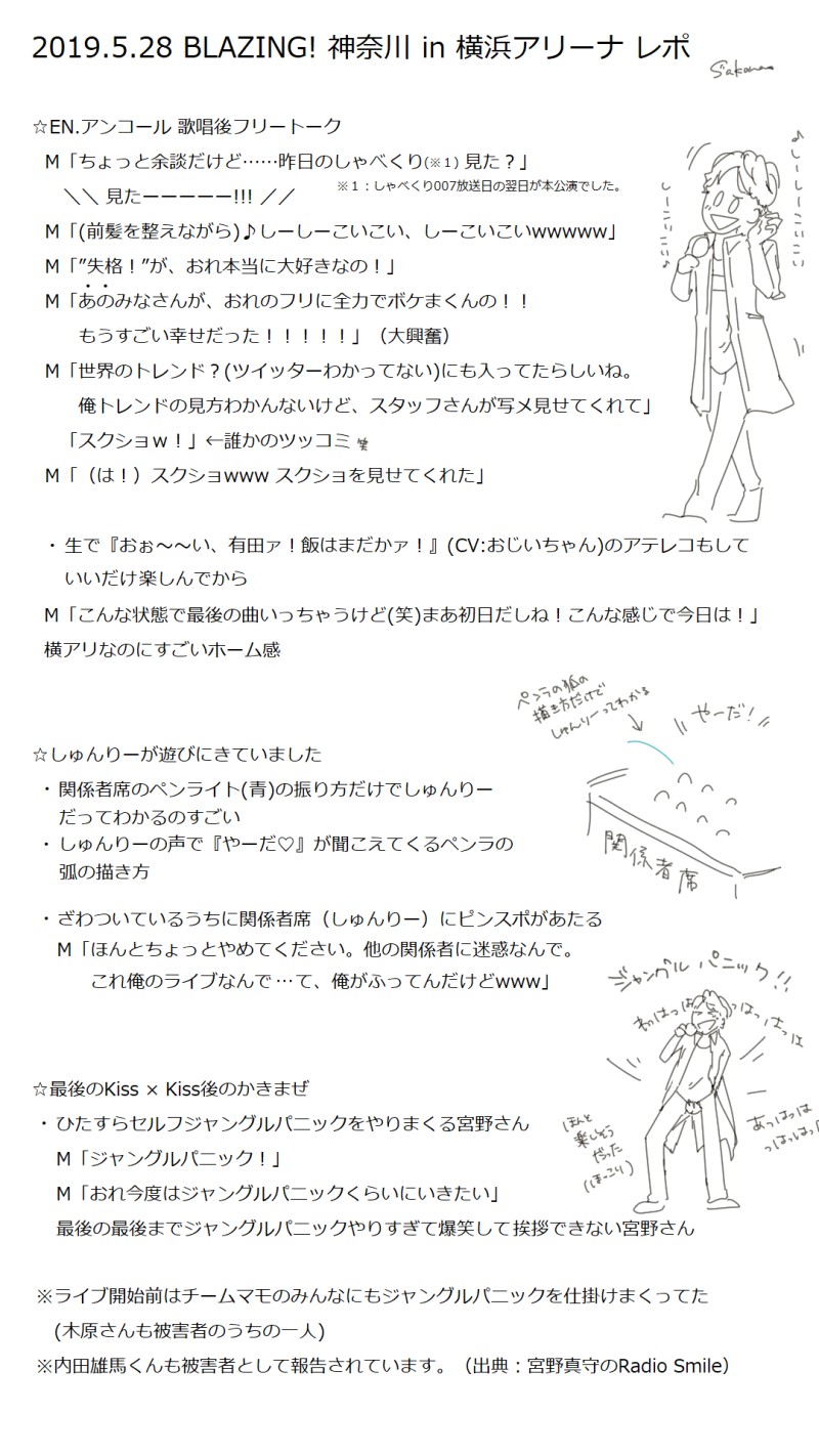 oskn_js☆quiet followDONEBLAZING!行ってきたところの各公演のメモ。 ##レポ show all(+9 images) Tap to full screen (size:1080x1920).Repost is prohibited oskn_jsDOODLEあけましておめでとうございます。子年もよろしくおねがいします。 oskn_jsDOODLEこれは2019年の1年間アイコンにしていたイノシシ男 oskn_jsDOODLEこれはおげんさんといっしょ第3回目が放送された時に描いたやつ oskn_jsMAIKING oskn_jsDOODLE2019.12.10 WSS Season1アフタートークショー”TOBIの部屋”のメモ。司会のTOBIさんと、宮野さん、笹本さん、樋口さん。15分ほどのトークだったけれど、色んなお話が聞けて楽しかった〜! 4 oskn_jsDOODLEぴんぽん recommended works wawawaTIRED慈伝の好きな部分です。 oskn_jsDONE2017.3.12 カルライ1st Liveまいらすのかわいかったとこ。 oskn_jsDONEラジスマ公録1部。マモ「はあ…やるの?これ。ほんっとにやだ!」マモ「季節外れのマモタクロース、バレンタインバージョン」 oskn_jsDONEラジスマ公録1部。メールをうーんて読む時の癖がかわいすぎた。 oskn_jsDONE髑髏城の七人 Season月 下弦だいすき。 6 oskn_jsDONE2018.5.5(1日目)ST☆RISHファンミーティング oskn_jsDONE2018.7.15 銀河英雄伝説イベント閣下は何を見ておいでですかゲームの時に宮野さんが「これ、僕がボケまくれる最高のゲームじゃないですかあ!✨」って嬉々として椅子に長い脚ぶん投げて座ってたのとてもよかったです。 4 oskn_jsDONE2018.9.9 RequestⅡ oskn_jsDONEMAMORU MIYANO ASIA LIVE TOUR 2019 BLAZING!衣装とセトリのメモ。 5