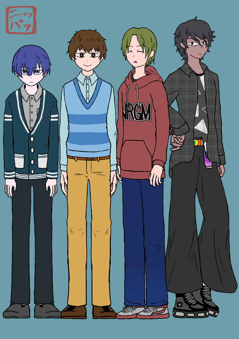 大学生の荒井君、中村君、袖山君、赤川君の私服妄想。