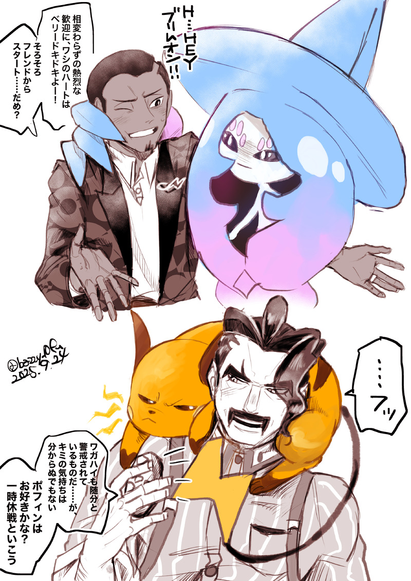 セイサワだァ🙌1枚目と2枚目の温度差激しいけどテンションは同じ。持ちポケちゃんたちは全員ご主人命なので、後々ご主人を傷付けることになるであろう危険分子の臭いにはめちゃくちゃ敏感、だといいな。特にセイサワの場合のしんがりズは最後までご主人のラヴァーに対してツンツンしててくれると嬉し。アニメ漫画ゲームで教師たちが出てくる願掛けのためにもうちょい更新ペース上げます💪(2025.09.24)