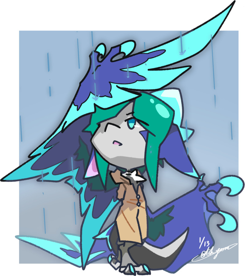 雨に降られるクスさん