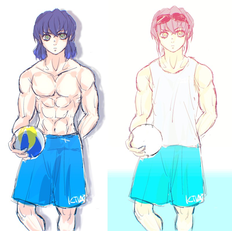 ビーチバレーというかただバレーボール持った伊之助🏐着せたくもあるけど脱がせたくもある結果意味なく並べる図。ノースリーブ伊之助逆に肉体強調されてよくない?尊い絵みたいのとかホワホワも憧れで描いてみたい気持ちはあるんだ…ごくまれに思いつく時あるけど見た夢忘れるのと同じですぐ忘れる😭あの貴重な妄想どこいった?交際0日婚も大好きだから描いてみたいんだけど思いついては忘れる