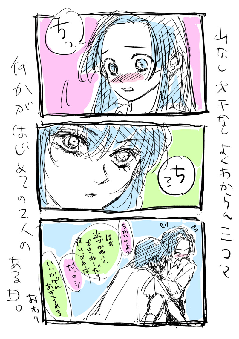 殴り書き!恥ずかしがるアオちゃんと余裕な伊之助が描きたかった。あと覆い被さって女子の膝がこうなってるのがとても好きなんだよわかる?今日boothに本送った!通常通りなら11日の22時にbooth出来そうだけど…色々不安…家に届く位のタイミングでポイピクに公開しようかな?ほんと字が読めないから(どんだけ)何言ってんだ、と諦めろっていう台詞?好きなの…でもオメェ何言ってんだだとちょっと悟空ぽいな
