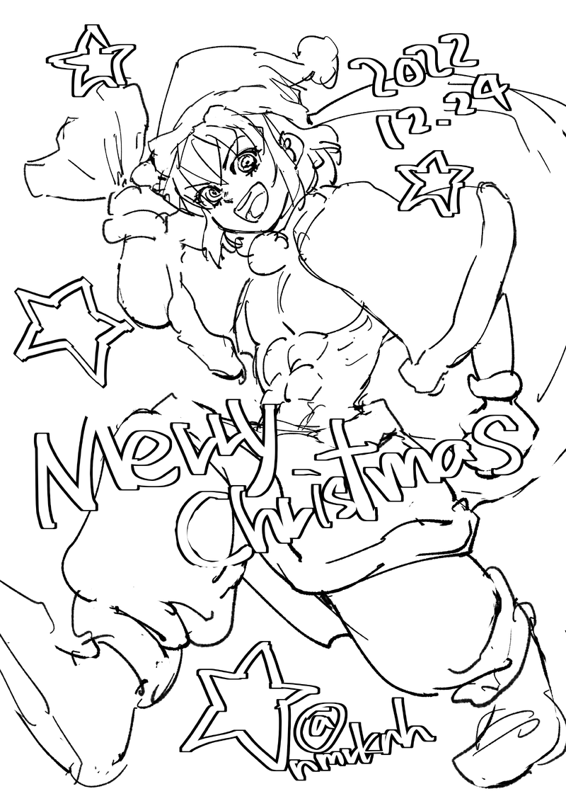 色塗らんクリスマス絵とか…塗り絵か?💦塗り絵にしても線が死んでる💀投げ縄塗りを失った私はもう色置く事も完全に閉ざされた