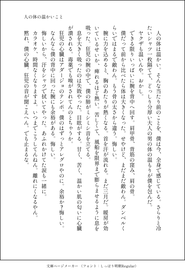 aaaooo000999☆quiet followDOODLE体と肌と体温の話4枚。そのままTwitterにあげようと思っていたのですが、2枚目がRっぽくなったので、ぽいぴくにしまいました。それぞれつながりのない別の話です。(1枚目と3枚目は既出) show all(+3 images) Tap to full screen (size:630x928).Repost is prohibited Let's send reactions! freqpopularsnackothersPayment processing Replies from the creator Follow creator you care about!☆quiet follow aaaooo000999MEMO舞台挨拶18:30からの回のメモです。演者さんのお名前とか間違っているところがあるかもしれません。ご容赦ください。 2 aaaooo000999MEMOコロナ日記(スタンプ不要) 4 aaaooo000999DOODLE【改訂】自分の部屋を購入して成田と同居してるさとみくん(30過ぎ)。 13 aaaooo000999DOODLE死ネタ。6338くらい。運転手してる20代くらいの舎弟視点(そんなのがいるのかどうか知らん) 2 aaaooo000999DOODLE前作の歪みを是正するため、平和でハッピーラブを目指しました。リゾート温泉宿に泊まった翌朝の話。えっちする場面はないですが、こんなえっちしましたという回想シーンがあります。 2726 aaaooo000999DOODLE【注意】さとみくんが女性と関係を持ったことを示唆する表現があります【注意】うそをつくさとみくんとそれをなぁなぁにする成田。当方、さとみくんは真っ当に生きる子ですという気持ちの裏で、ずぶずぶに染まって欲しい気持ちを捨てきれません。 12 recommended works Few__2516DOODLEStanxeno18⬆️ yes/no 4 obake_motiDOODLE⚠️CP混合なので苦手な方は絶対に見ないでください。【順番】タル鍾→万放→カヴェアル→リオヌヴィ→召フリ(召使の♂バージョンあります) 18 Suzuran_I_TRPGDOODLEアナログ模写集🔑イナリ・お月様・魔術師サマ・悪魔さん・女教皇ちゃん・オマケ(IF教皇/TS) 5 sirome0_0MOURNING大人ツッキーの目の前に現れた想い人。 729 r_iu3DONEメリークリスマス🎄🎅🎁 nyaaaaan__0302DOODLEちょぱ誕 Ka33k_99DONE昔線画をお借りしたものです!ありがとう~!!塗り絵大好き 6 kaina_picturePROGRESSイラスト95途中黒ウィズ、リフィルのクリスマス衣装のファンアート。細かい装飾が難しすぎる。なかなかいい感じに描けないイラスト #イラスト初心者 #ファンアート ・のりDONE超深海に渦巻く愛2の展示作品です12月24日は五夏の記念日! 5