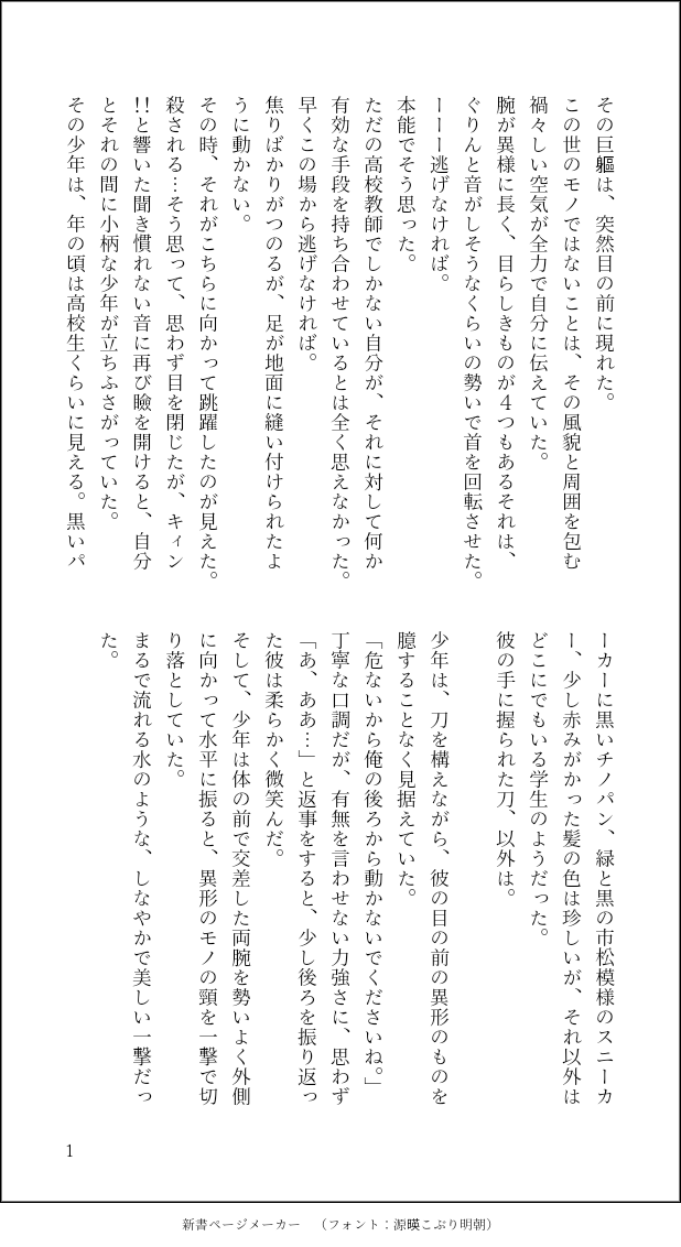 書きたいところだけ書くスタイル。現代版鬼i狩iり🎴くん(記憶あり)と🔥先生(記憶なし)。後日、高校で再会してあれやこれやあって最終的には🔥🎴に落ち着くいつものやつ。続きは今のところないけど、要望があれば。