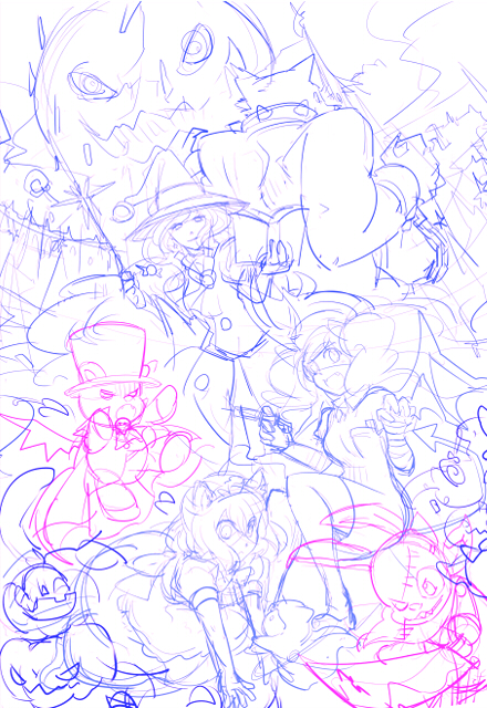ハロウィンやっほーっていう絵を描きたい願望。ごちゃごちゃ