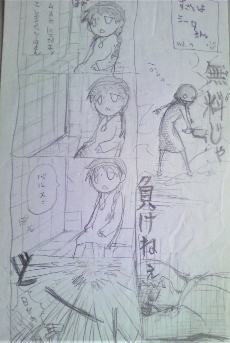 発掘したネタ帳の落書き漫画。シータさんはすごいぞ