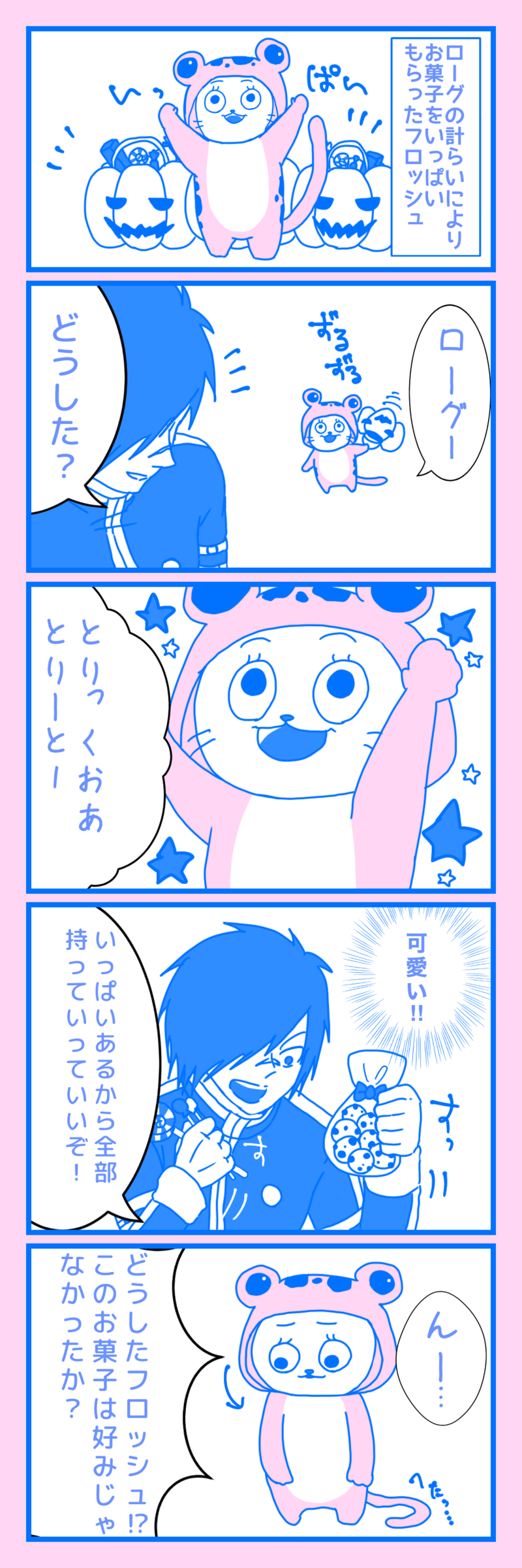 ログフロ。大遅刻はろいん漫画もどき。お菓子くれた方ありがとうございました。描ききれんくてすんませんした。