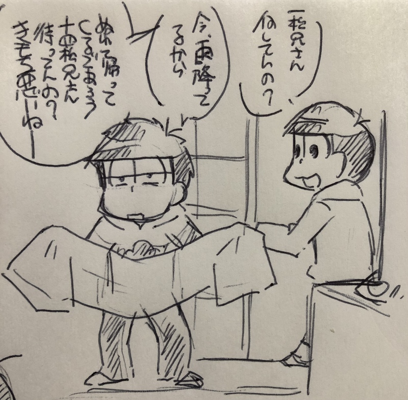 いそべ☆quiet followDOODLEにわか雨で濡れねずみになっているだろう五男を迎えるため、バスタオルを広げて玄関で待機している四男。人生楽しそうな自カプ #一十四 oneFourteen show all(+1 images) Tap to full screen (size:3022x2966).Repost is prohibited Let's send reactions! freqpopularsnackothersPayment processing Replies from the creator Follow creator you care about!☆quiet follow いそべDOODLE壁尻ってしまって怯えて泣いちゃうじうしまつくんをどないかしたいとずっと考えてる。 いそべDOODLEオチも何もないホントのラクガキ114。 いそべDOODLEたまに五男をおちょくる四男。 いそべDOODLE特に誘ってるわけでもない五男と誘われてるわけでもない四男。 いそべDOODLE五男の後に起きた四男が、目を閉じたまま手をベッドにぽすぽすして五男を探している。人生楽しそうな自カプ いそべDOODLEおっぱいの付いたじうしまつくん related works toributettenaniPAST🔞己のここちんに正直な18114(ほぼエロ) 4 hanpa114DOODLE素材お借りして、いちゃいちゃいちじゅしれんしゅー なりたDONE捧げもののミスプリちゃん〜 nutta_LeeDONEぴかイチ11に行けなかったので悲しみのエア無配です!例のシリーズですがわからなかったらすいません!!🙇♀️楽しく好きに作って達成感半端ないです!!12月こそは行けますように!!クリスマスいちじゅしちゃん本を存分に狩らせてくれええええ!!! 4 madodonpa まここSPOILER三期一話の一十四です 💩注意全体図はちょっとえっち hanpa114MAIKING8月に入る前に書き始めたのに放置したら書けなくなったもの。ただただ十四松くんを甘やかす一松兄さん(と、それを分かった上でひたすら甘える十四松くん)の話、にするつもりだった 2666 kmt_anrDOODLE過去絵リメイク中…完成するかな🤔 hanpa114DOODLE一枚目はアニメ18話感想?二枚目は、せっかく家に二人きりなのに出かけてしまう1と察してセッしたい14。三枚目は途中から迷走して放置したモノ。なにが書きたかったのやら…? 3 noharamioDONE18の4(→)(←)5オナばれ5から始まる45🌻 7 recommended works ro.PASTスマホからじゃR-18投稿出来ないんですねこれまあ具体的には何も描いてないけども一応最後2枚注意。主に一十四まとめ…?最後はチョロおそなのだろうか…(へそウォの称号最後の奴の主張っぽいのしたらニー友切られてて笑った)ガイドラインみたら最後2枚R-18G相当じゃんとかそもそもむつごカプ自体が抵触するような斉木の方も沼ってるカプが思いっきりそれなんで悩む。 9 noharamioMAIKINGなかなか進まないシリアスもどき(全くもってシリアスにならない) 2 kmt_anrDOODLE過去絵リメイク中…完成するかな🤔 hanpa114DOODLE一枚目はアニメ18話感想?二枚目は、せっかく家に二人きりなのに出かけてしまう1と察してセッしたい14。三枚目は途中から迷走して放置したモノ。なにが書きたかったのやら…? 3 chocotekoMOURNINGたわいのないだゆ 12 hanpa114TRAINING素材お借りして練習。マジでマンガってどうやって描くんですか…?? hanpa114MAIKING8月に入る前に書き始めたのに放置したら書けなくなったもの。ただただ十四松くんを甘やかす一松兄さん(と、それを分かった上でひたすら甘える十四松くん)の話、にするつもりだった 2666 194DONEつまみ食いしながらの無童です しとろんDOODLE英桃 / まぶたにキス制服って萌える