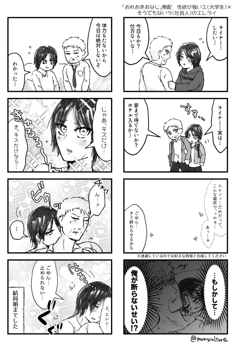 chikuwa_pan_☆quiet followDOODLE性欲の強いエとそうでもないラのエレライ(おれおまおなじ無配) show all(+1 images) Tap to full screen (size:1054x1550).Repost is prohibited Let's send reactions! freqpopularsnackothersPayment processing Replies from the creator Follow creator you care about!☆quiet follow chikuwa_pan_DONEエレンと行く!毎秒ドキドキ♡一泊二日バスツアー 2 chikuwa_pan_DOODLE悪魔と英雄のルームシェア/エレライ再録本「再会」(現在在庫なし)の描きおろし分です。恥ずかしいので前半だけ…(余談)1枚目4コマ目の背景素材は鹿児島の商店街なので、ここは鹿児島なのかも(???)#おれおまおなじ4 3 chikuwa_pan_DOODLEスイマジョのまんが 2 chikuwa_pan_MOURNINGクリスマスみたいなエラ…と思ったけど特に面白くなし(生首注意) chikuwa_pan_DOODLEエレンチャンとトレーライナー ライブでハプニング!?編(エレライ) chikuwa_pan_DOODLEシンデレライナー(エレライ) recommended works m_yDOODLE先月なんだけど急にテニプリにハマったんですよね さとう🎀PASTテニプリ過去絵。ブン太、ジロー、白石、海堂、乾、菊丸、大石 6 pacpac01cDOODLEひよしくんのほっぺをつんつんできる絵 pacpac01cDOODLE撫でられたい人向けの日吉若 あんずDOODLE日吉くんのぬいはまだですか 2 あんずDONE超えたいと思った、憧れのその先へ 2 あんずDONE日吉くんとジローくん(腐じゃない) 4 MochimDONE丸井くんバレキス発売おめでとう 3 ねぎくり庫PAST氷帝詰め(主に滝さん) 10