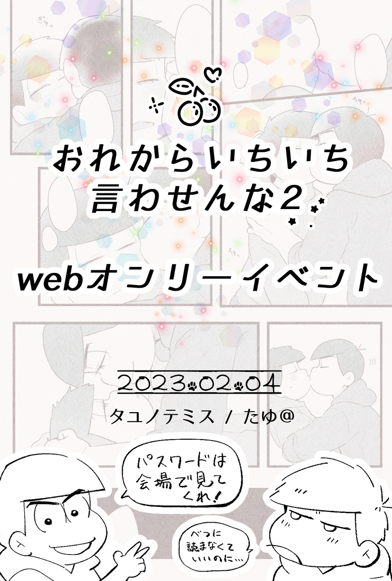 tayutatata415☆quiet followMENU『おれからいちいち言わせんな2』の記念漫画パスワードは会場お品書きからご確認ください。 #おれからいちいち言わせんな2 #おれいち2 ourei2 show all(+6 images) Tap to full screen (size:1181x1748).Repost is prohibited Let's send reactions! freqpopularsnackothersPayment processing Replies from the creator Follow creator you care about!☆quiet follow tayutatata415DOODLE攻めには雄ぱいとデカちんを盛らせるんだ!女装ならなおさらだ! tayutatata415DOODLE tayutatata415MOURNING発行から1年経ったから載せても良いとの事なので、24結婚アンソロ『かならず一番愛してる』に寄稿させて頂いたものを再録します。参加の機会をくださりありがとうございました! 10 tayutatata415SPUR MEいちまつくんのえっちベルト…えっちボディスーツ… 4 tayutatata415MOURNING女児松くんまとめ今後描いたらここに集まるかもしれない。 4 tayutatata415SPOILER『The shadow of the moon sets』の裏話。本のネタバレをガッツリ含みます。ページ順に書いてくので、考える余地が欲しい人とまだ読んでない人は注意。 4574 related works 🧬💙💜DOODLEおれいちⅡニート 自分絵サンタ 公式寄 2 tayutatata415MENU『おれからいちいち言わせんな2』の記念漫画パスワードは会場お品書きからご確認ください。 7