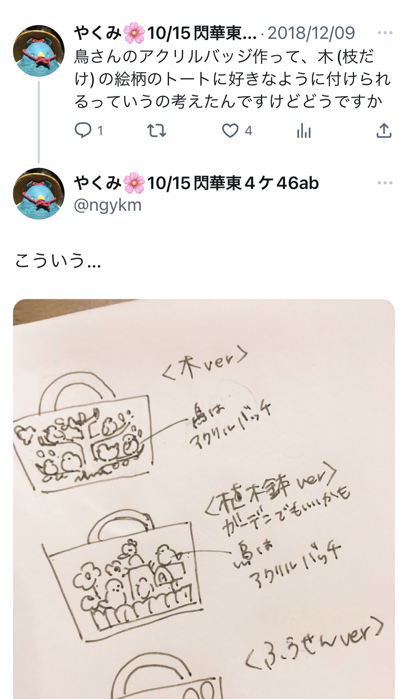 やくみ☆quiet followMEMOアクリルバッジと専用トート2018.12.10 #TOMARIGIデザイン #作りたいものメモ show all(+1 images) Tap to full screen (size:1125x1924).Repost is prohibited Let's send reactions! freqpopularsnackothersPayment processing Replies from the creator Follow creator you care about!☆quiet follow やくみMEMOウッドパーツメモ2018.12.5 4 やくみMEMOアクリルバッジと専用トート2018.12.10 2 やくみPASTFFカップケーキ(粘土製)2018.12.31 3 やくみMEMOウッドフレーム試作とアイディア2019.1.8 3 やくみMEMOパーツ試作品2019.1.15 やくみPAST刀剣男士ウッドアクセサリー2019.1.19 3 related works やくみMEMOアクリルパーツラフ2020.1.11 やくみPAST伊達双騎祈願2022.8.7 やくみPASTフロイドイメージランチトート2020.11.18 2 やくみMEMOアクセサリー試作とアイディアメモ2020.8.10〜8.19 9 やくみPAST刀剣男士イメージアクセサリーHanaruriシリーズ 11 やくみPASTオクタ概念ポーチ2020.6.16 3 やくみPAST2020.2.23 閃華ノベルティ やくみMEMOオリジナルアクリルパーツ2020.1.24 2 やくみPAST審神者帯刀許可証ストールクリップ2019.12.5 8 recommended works dominiqueDONE兄者大根ができました。 縁(ゆかり)DONE以前オーダーいただいた太郎太刀くんイメージのピアスとゴムブレス 2 き なDOODLE楽しみだね④ odanobunaga1588DOODLEかすもつネタバレアリ。自卓アーラム・サギーラ語り。見るならyes。茶色は一緒に描かれてた子。青が、そう。 3 llI7udon0141DOODLE顕斯最中絵 パスワードは「成人です」現パロ要素が何一つ無いけど現パロ顕(18)斯(15)くらいのつもりで描いてる中学生と高校生の体格差が描きたかったんだよね 76_HTFDOODLEお口の管理ができていない. Suna_OwbSPOILER様子のおかしい探索者の救済思い出PU(1/3)⚠️夕ヶ溪奇譚/鏡ミラー 現行未通過NG 4 すはまだんごDONEIts skeb RequestThank you so much!🎅🎄🎁 2 triowood33DOODLE 5