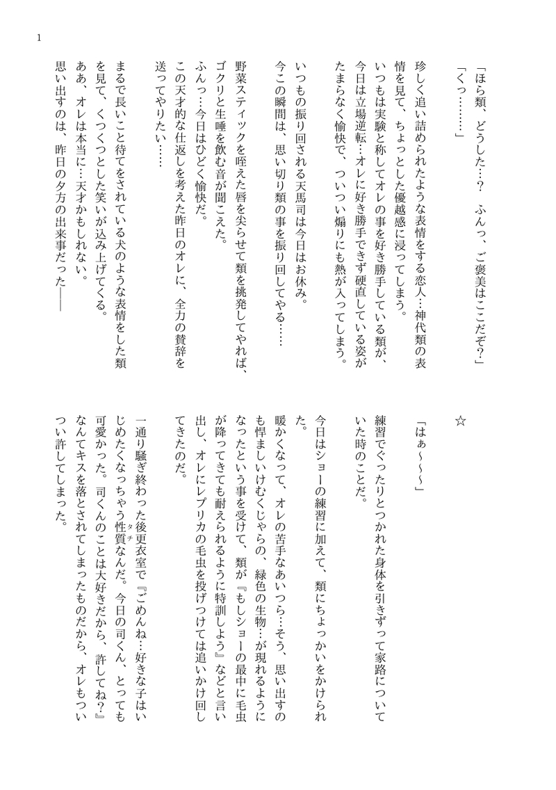 匂いを嗅ぎたい。彼の甘く香ばしい匂い。お日様のような、というのは多分に彼から想像するイメージに引きずられている。チョコレートのように甘ったるいのともちょっと違う、類にだけわかる、と自負している司の匂い。その匂いを肺いっぱいに吸い込みたい。