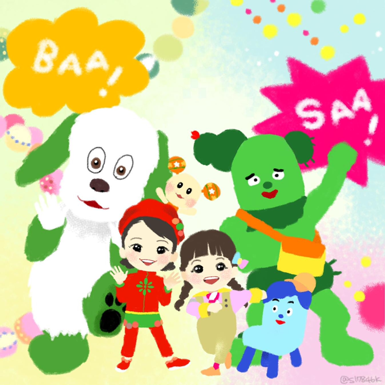 はるちゃんとスイちゃんのいつもと違うお洋服が可愛いくて描いたイラストです。はじめは2人だけ描くつもりが、ひとり、またひとりと増え、気がつけば大人数になってました。人物よりもキャラクターを描く方が難しくて何回も描き直しました。(特にサボさんとワンワン)